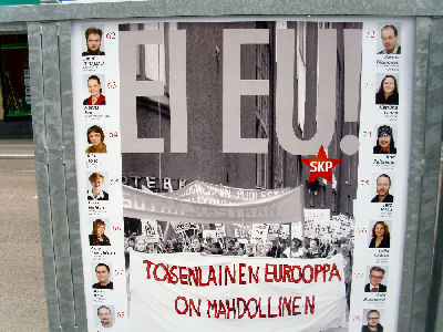 ollut pari päivää. Pohja: Kirjoitus vuosi sitten jolloin Brax esittelee toimikunnan mietintöä ja lopputulos nyt oli vielä kamalampi. Vastuun tästä kantaa Vanhanen-Katainen, häikäilemätön parivaljakko vailla vertaa, joka antaa muiden tehdä likaisen työn, ikään kuin heillä ei olisi toimeksiantajan roolia ja vastuunkantoa. Hyvä esimerkki on myös se kun nyt Vanhanen itkee köyhien puolesta mediamaksusta, jonka keskusta on tietenkin hyväksynyt ja jonka idea tietenkin on tasamaksu jotta köyhät maksaisivat rikkaiden maksun, osan siitä. Tämä vaalilaki. Olen kerännyt eri lähteistä satunnaisesti aineistoa, mutta kyllä sekin antaa tuulahduksen siitä mistä on kysymys; demokratian halventamisesta oikeuden valekaapuun käärittynä, niin kuin jo vuosi sitten otsikoin tästä ”oikeusministeristä”, joka tulee jäämään historiaan varsinaisena iljettävänä nuoleskelijana vallan kammareiden herrojen nauraessa tälle hullulle ämmälle. Kyseessä on vallankaappaus, joka suoritetaan oikeudenmukaisuuden nimissä, mutta ei kerrota että uusien yrittäjien pääsy estetään näiden dementoituneiden ja sementoituneiden vanhojen puolueiden idylliä särkemään. Tässä rivit hyppelevät kun tämä näppäimistö on niin pieni tässä mini-asuksessa, koetan korjata sitten oikoluvussa. Nyt siis valtakunnallinen äänikynnys tulee, jos tulee ja estää uusien voimien läpipääsyn, vaaliliittojen kieltäminen varmistaa tuloksen. Media. Ilkankin mainitsin näiden ällö-ymmärtäjien joukossa, mutta nyt en enää näytä kirjoitusta löytävän joten parasta se on poistaa ainakin toistaiseksi ymmärtäjien joukosta. Erillinen kirjoitus jossa ruoditaan mediaa. Lue! Voiko vielä joku muuttua? Kyllä voi! Nyt jo näissä eurovaaleissa on saatava keskustalle murskatappio jotta Vanhasesta päästään eroon, siis näillä irvikuvavaaleilla, joilla muka äänestetään europarlamentin jäseniä ja niin edelleen,äänestetään kaikesta muusta ja prosentti jää 30:een, siinä demokratia toimii. Tämähän on ohje joten lukija ottakoon sen omaan harkintaan. Ohje perustuu siihen, ettei Lipposestakaan päästy eroon kuin vasta tämän Jäätteenmäen toimesta joka yllätti Lipposen housut kintuissa tämän suvereenilla ulkopolitiikka-alalla ja joka hädissään turvautui jopa Berlusconiin vaalien aattona. Hävisi 6000 tuhannella äänellä joista Karpela keräsi 19000 Lipposen päänmenoksi. Miten vaalilaki voisi kaatua? Seuraavassa eduskunnassa tarvittaisiin kolmannes paikoista, niinpä kristillisille 3.25 %, rkp:lle 3:25 % ja sdp:lle sitten 27 %, siinähän se. ei kai kukaan puolue voisi äänestää itseään pois eduskunnasta seuraavissa vaaleissa? Bussi