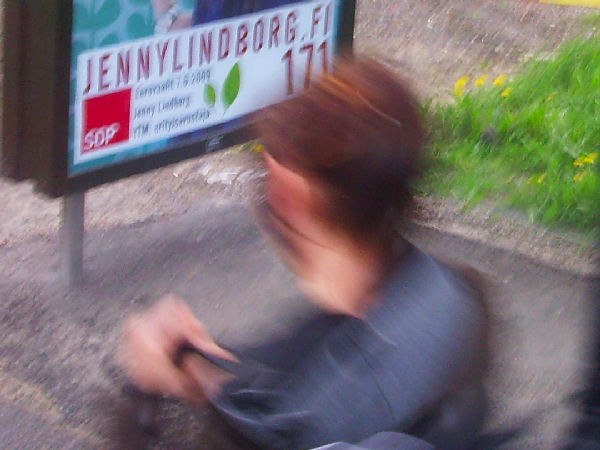 ennakkoäänestys alkoi! Isotkin vaalimainokset senkun vilisivät kulkijan matkalla. Kuvassa Jenny Lindborg ja Hannu Takkula. Keski-Suomi. Jyväskylä. Rajakatu ja Väinönkatu. Tänään torstaina 2009-05-28 klo 14:54. Pertti Manninen. |